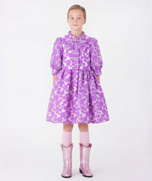 Keywords: jacquard girls party dress, floral birthday outfit, luxury textured girls dress